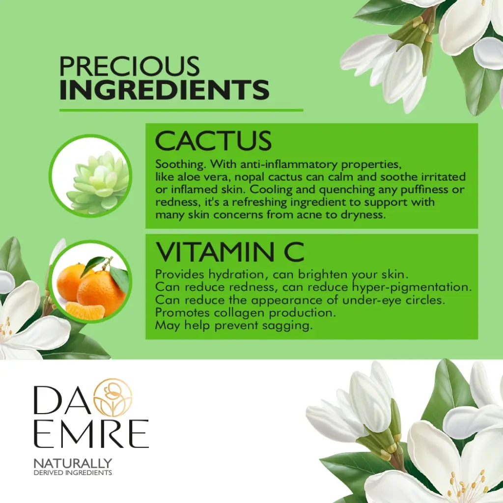 Experience a fresh, revitalizing cleanse with Da emere Cactus Shower Gel. Inspired by the natural purity of cactus extracts, this refreshing formula gently cleanses the skin while helping to hydrate and soothe, leaving it feeling soft, balanced, and refreshed. The light, clean fragrance and silky lather make every shower feel crisp and invigorating, perfect for daily use. Da emere Cactus Shower Gel brings a touch of nature’s resilience and freshness to your everyday bathing routine.