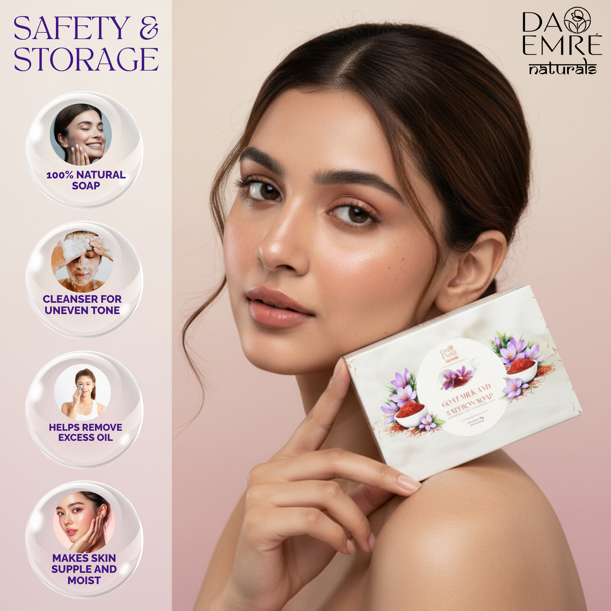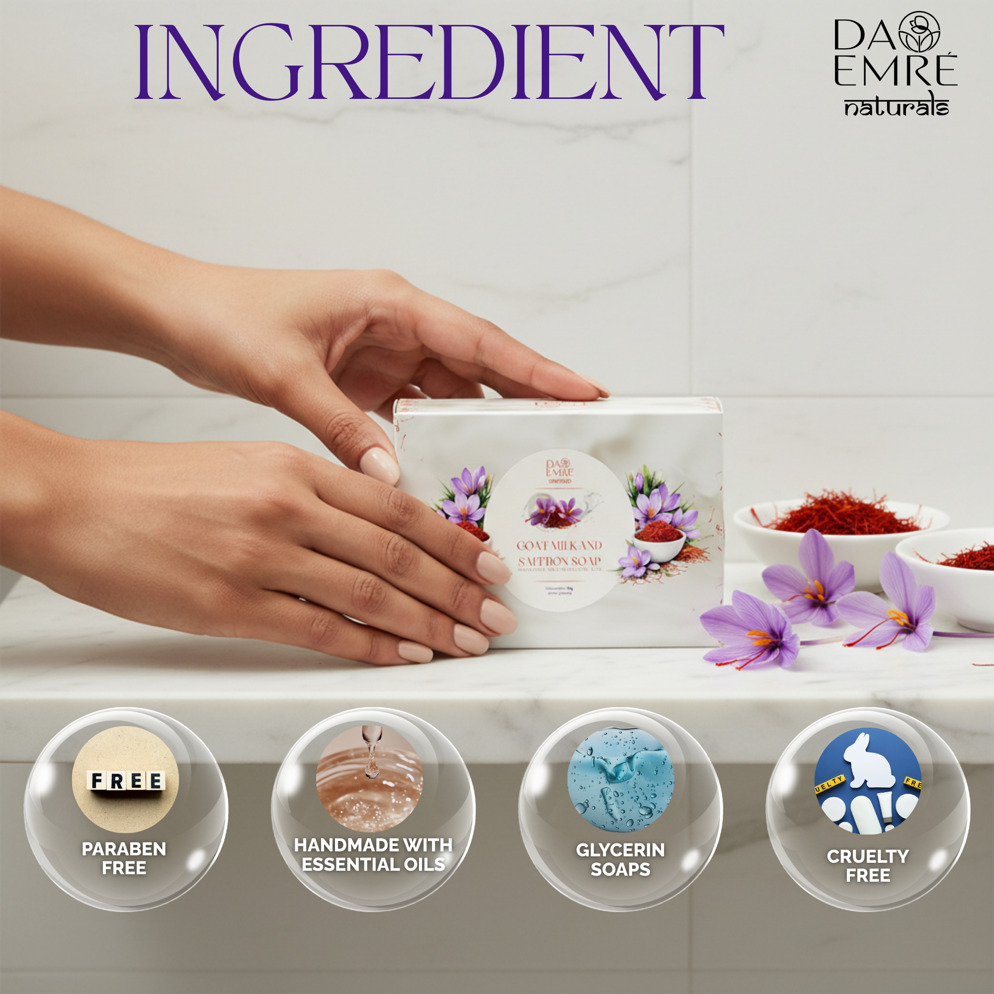 Experience the perfect blend of tradition and luxury with DA EMRE Goat Milk & Saffron Soap. Crafted with nourishing goat milk and precious saffron, this gentle herbal soap is designed to cleanse, hydrate, and enhance your skin’s natural glow.