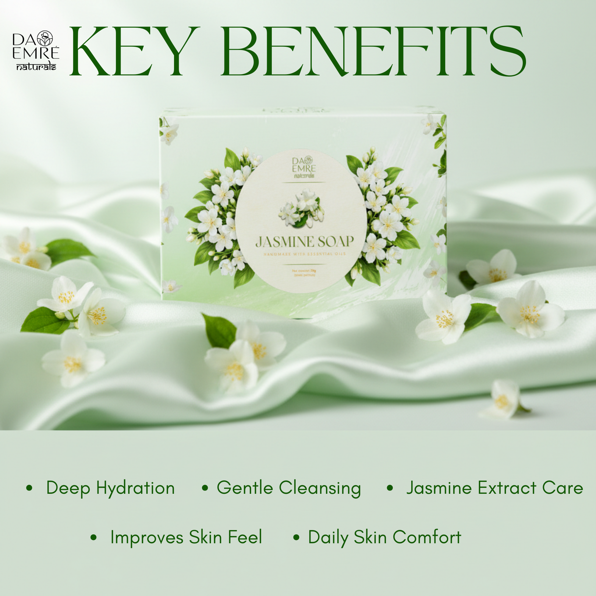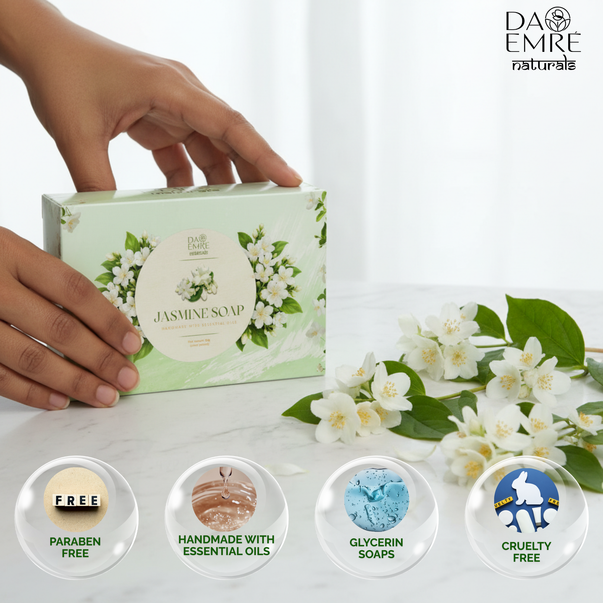 Experience the calming and refreshing essence of jasmine with this natural handmade jasmine soap, carefully crafted using skin-friendly ingredients. Enriched with the soothing fragrance of real jasmine, this soap gently cleanses the skin while helping to maintain its natural moisture balance.