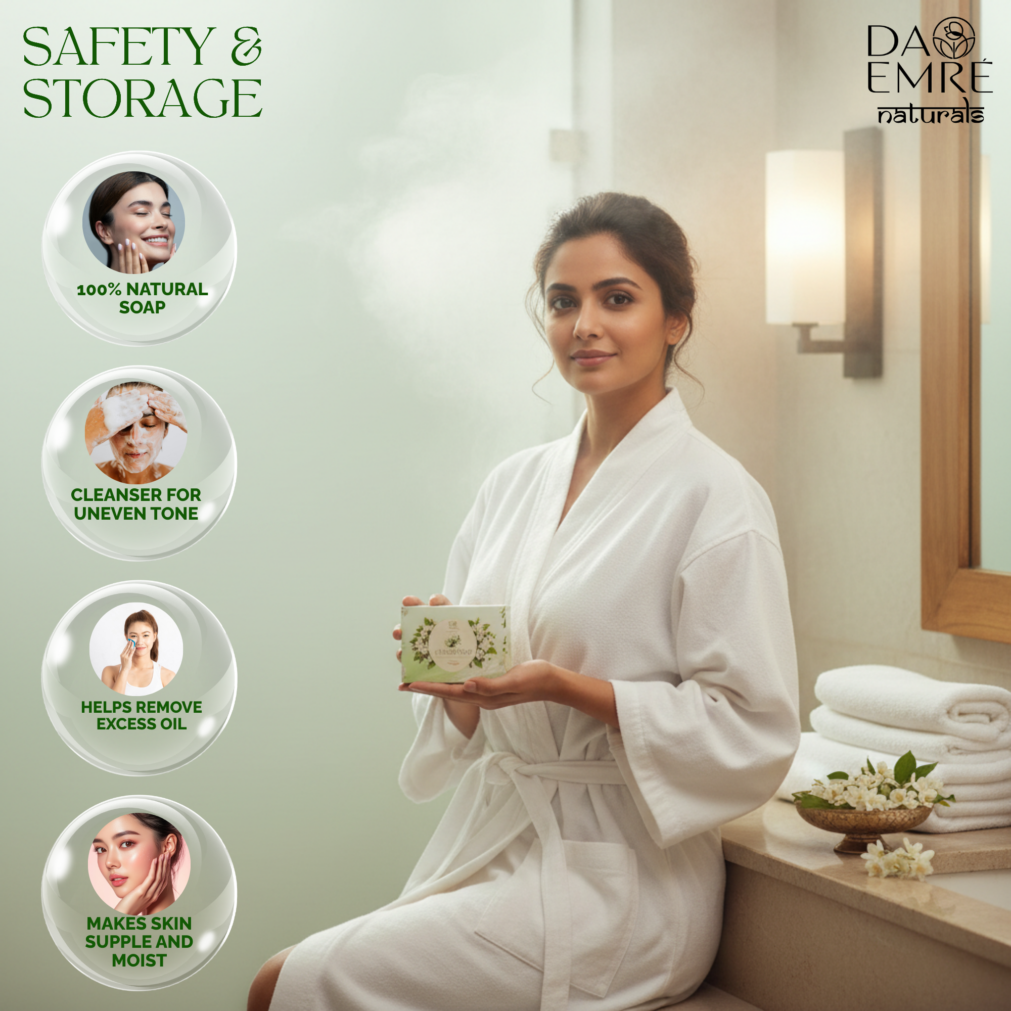 Free from harsh chemicals and artificial additives, this handmade soap is suitable for all skin types. Its rich lather and floral aroma make every bath a relaxing, spa-like experience, leaving your skin soft, refreshed, and delicately scented.