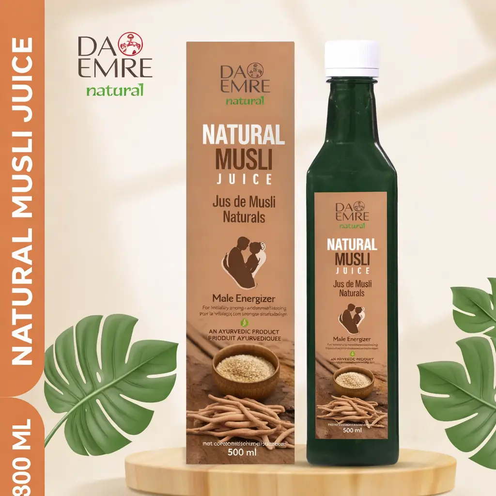 DA EMRE Naturals Musli Juice is a powerful Ayurvedic formulation made from high-quality Musli extracts, traditionally used to support male vitality, strength, and overall well-being. This natural herbal juice helps enhance energy levels, stamina, and physical performance while supporting long-term wellness.