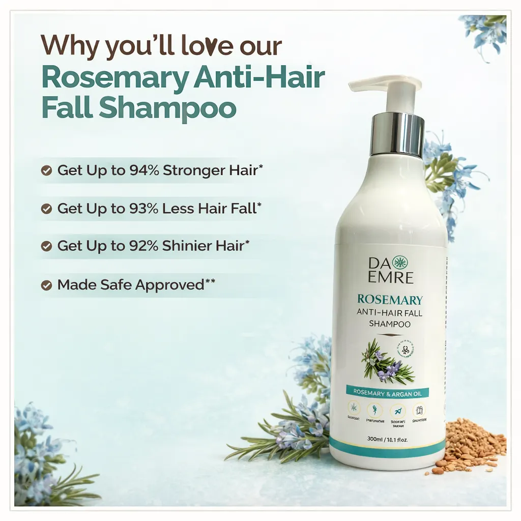 Give your hair the care it deserves with Rosemary Anti-Hairfall Shampoo, enriched with the natural goodness of rosemary to support healthier, stronger hair from the roots. This gentle yet effective formula helps cleanse the scalp, reduce hair fall, and promote natural hair growth. Regular use nourishes the scalp, repairs damaged strands, and leaves hair feeling soft, smooth, and refreshed without stripping away essential moisture. Designed for daily use, this shampoo is free from harsh chemicals and suitable for all hair types, making it an ideal choice for both men and women.