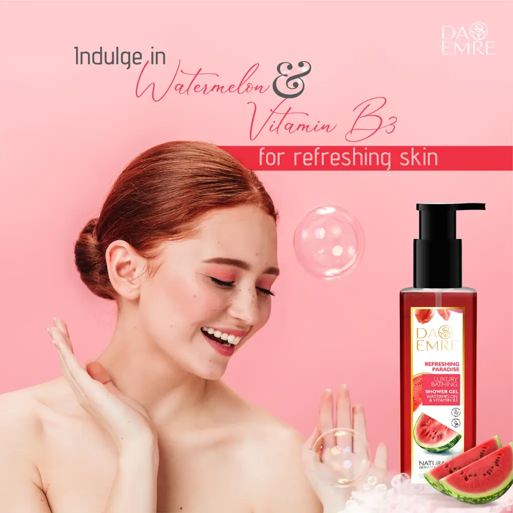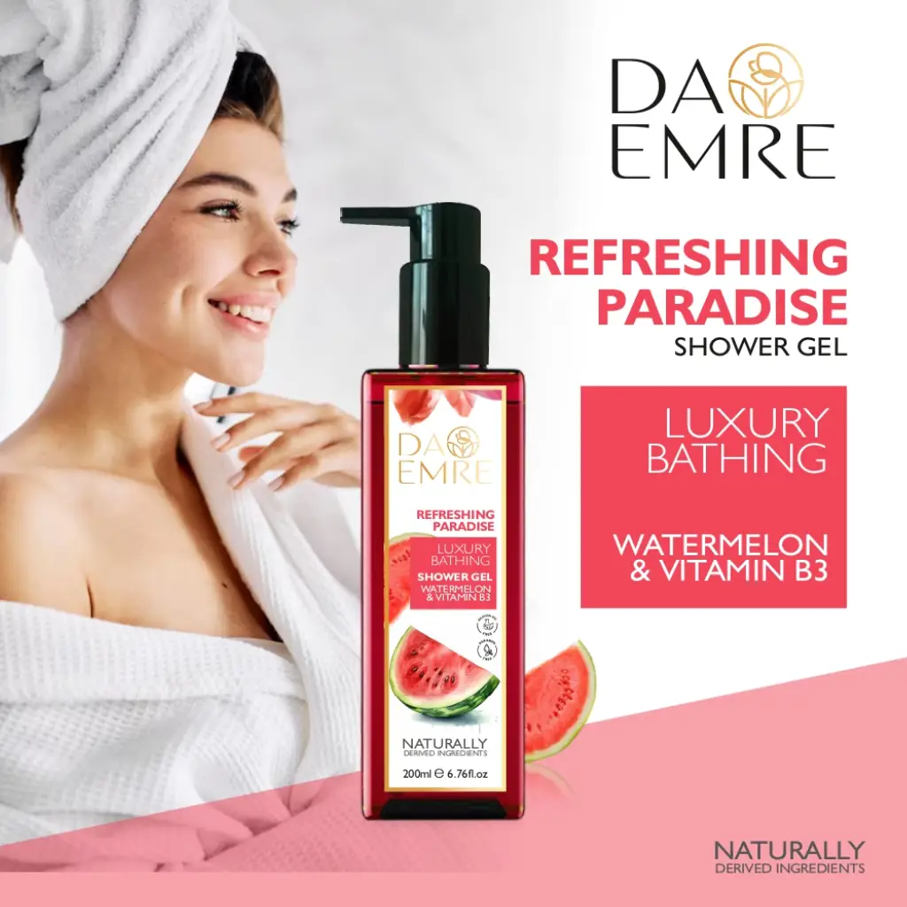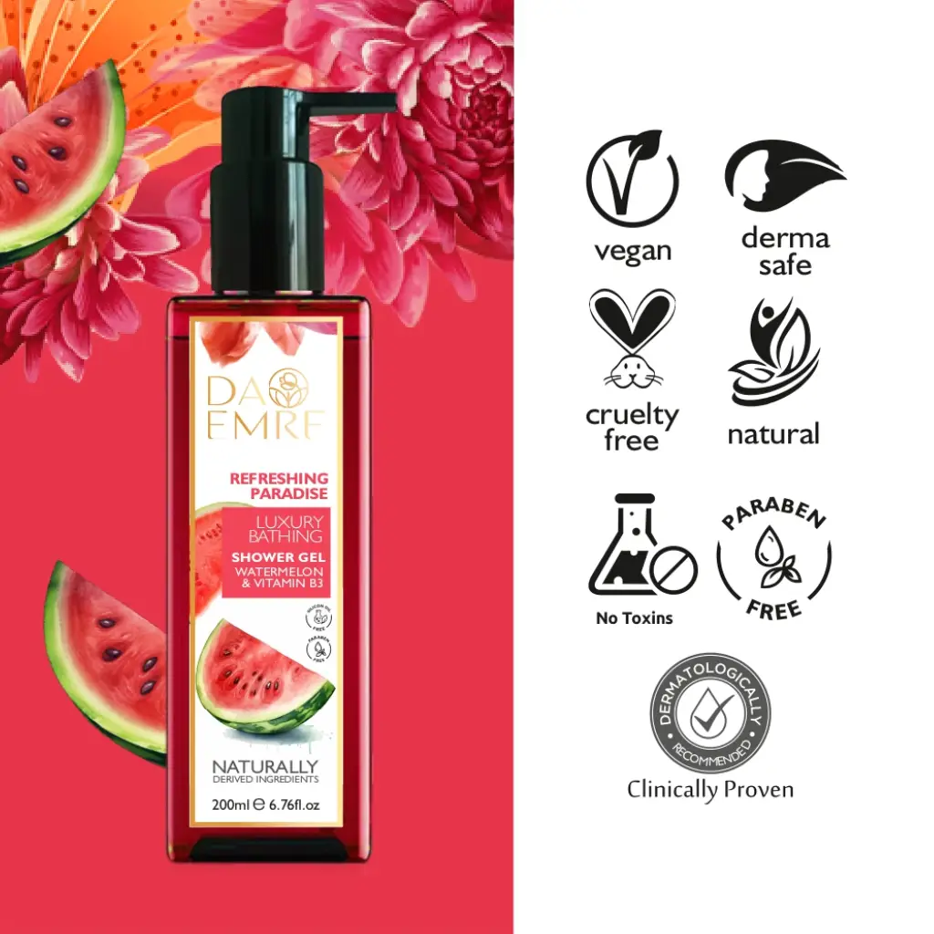 Refresh your senses with Da emere Watermelon Shower Gel, a vibrant and juicy body cleanser inspired by the crisp sweetness of fresh watermelon. This uplifting formula gently cleanses the skin while helping to maintain its natural moisture balance, leaving you feeling clean, smooth, and revitalized. With a light, fruity fragrance and a rich, refreshing lather, Da emere Watermelon Shower Gel turns every shower into a burst of freshness, perfect for daily use and ideal for an energizing start or a cooling end to your day.